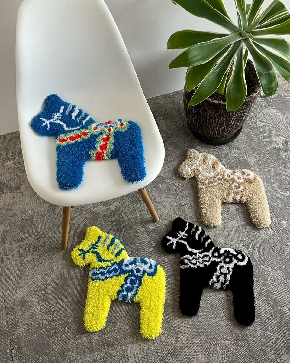 北欧で“しあわせを運ぶ馬”として愛されるダーラナホースのラグ。