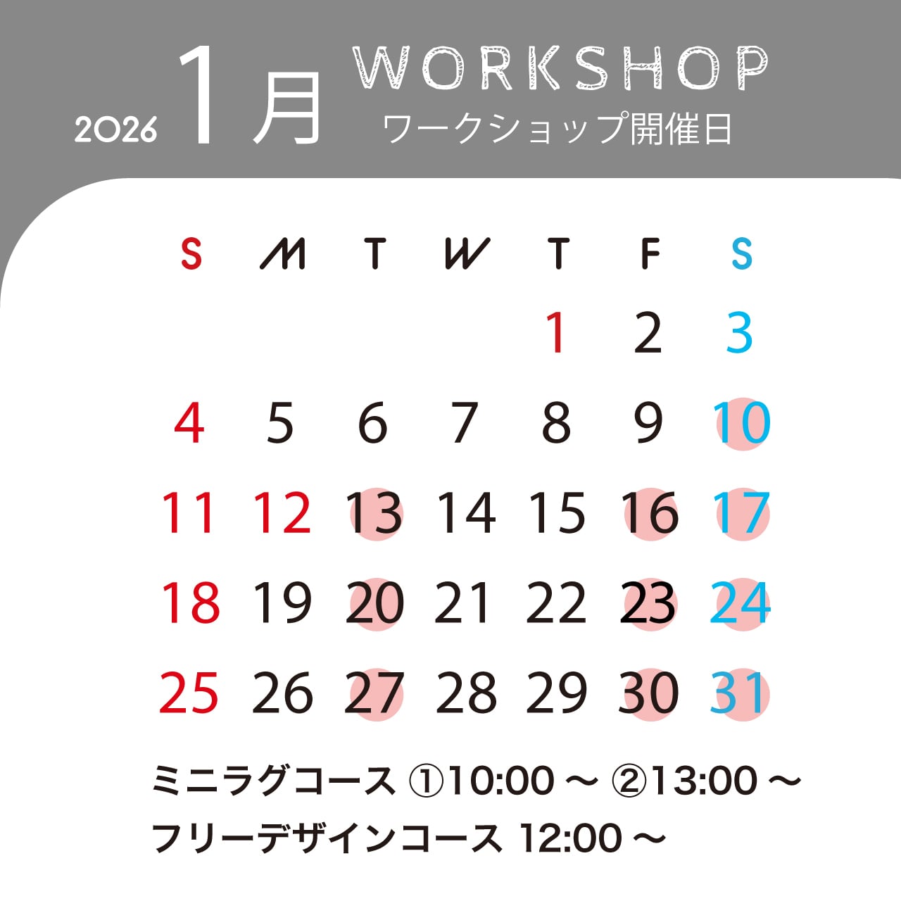 ※ワークショップの開催日は 火曜・金曜・土曜となっておりますが、その他の曜日も対応可能です!お気軽にご相談ください!
